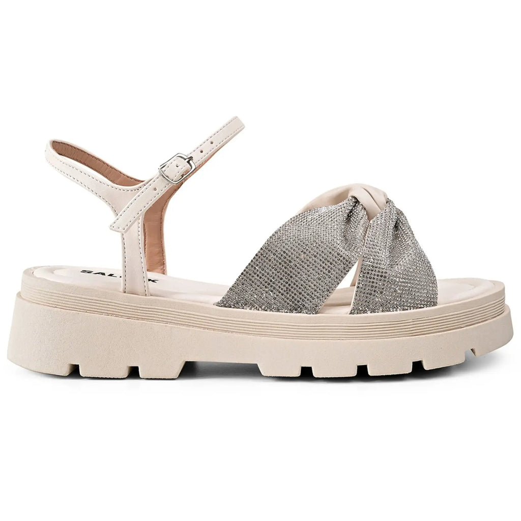 Sandália Papete Feminina Branco Brilhante Salook Solado Tratorado